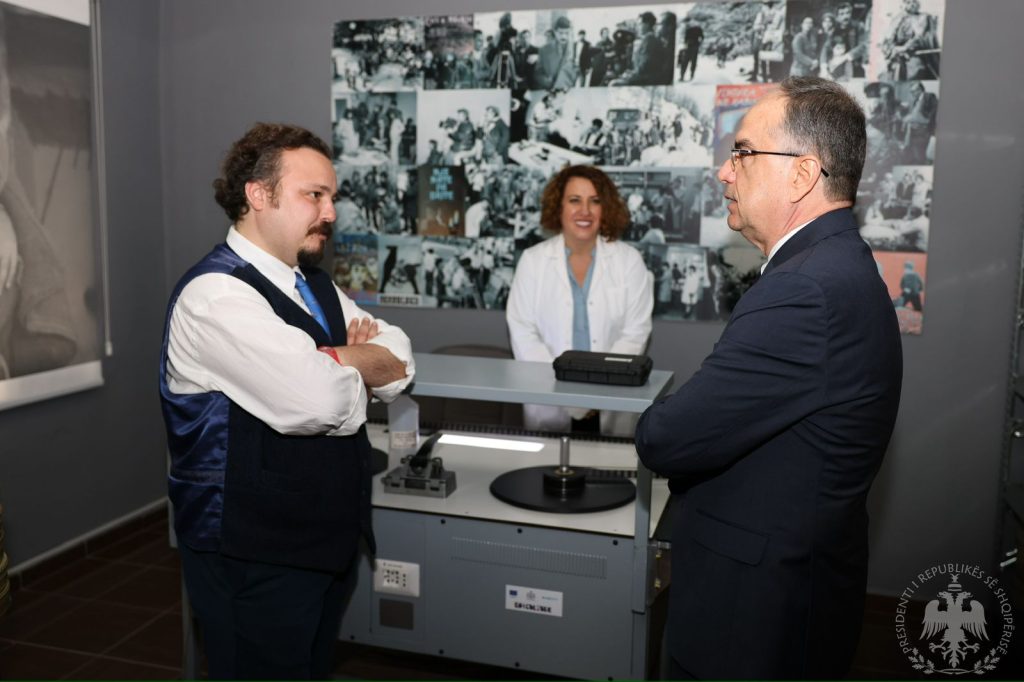 Vizita u zhvillua në një atmosferë shumë të ngrohtë ku zoti President u njoh me koleksionet arkivore dhe punën tonë për ruajtjen, mirëmbajtjen dhe digjitalizimin e tyre duke vlerësuar njëherazi rëndësinë e trashëgimisë kombëtare kulturore dhe qasjen e të rinjve për ta njohur këtë trashëgimi dhe për të nxitur kureshtjen e tyre për të studiuar e për të punuar në këto profesione të rralla.