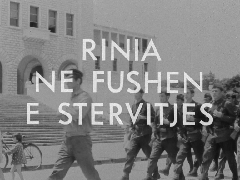 Kodi i referencës I/2-354 Titulli Rinia ne fushen e stervitjes Sinopsi Borizani i bie borise. Vajza dhe djem luftarake duke bere fiskulture. Duken cadrat e...