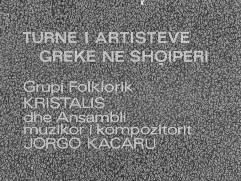 Kodi i referencës I/2-747 Titulli Turne i artisteve greke ne Shqiperi. Grupi folklorik Kristalis Sinopsi Korrik 1978. Artistet e grupi folklorik grek “Kristalis” vijne me...